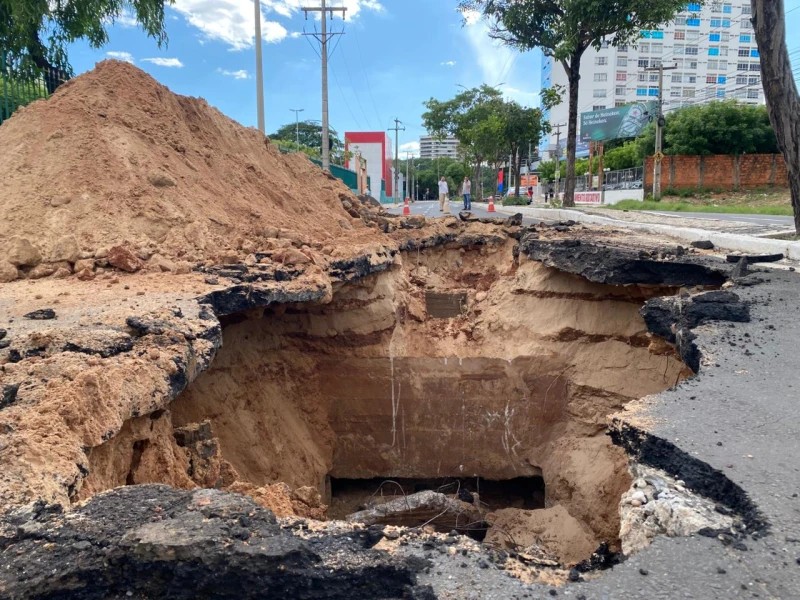 Cratera abre e interdita trecho da Av. Jóquei Clube, em Teresina