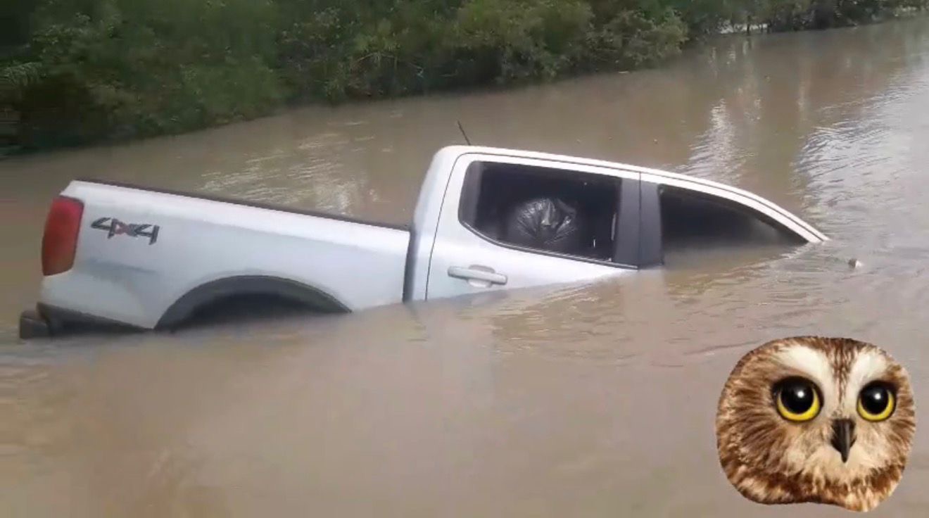Segundo informações preliminares, o motorista de uma picape trafegava por uma estrada coberta por água quando acabou saindo da pista e caiu em uma lagoa às margens da via. No veículo estava uma família, incluindo uma criança.