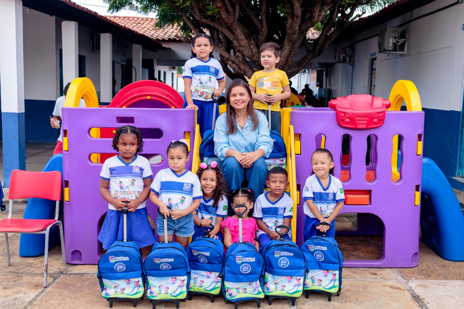A entrega foi realizada pela primeira-dama do município, Mônica Carvalho, e pela secretária municipal de Educação, Maria Aline, e contou com a presença de pais, alunos e da equipe gestora das escolas.